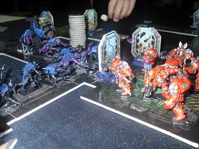 Pizza arrived during the game and then most of the lads went off to play Space Hulk: